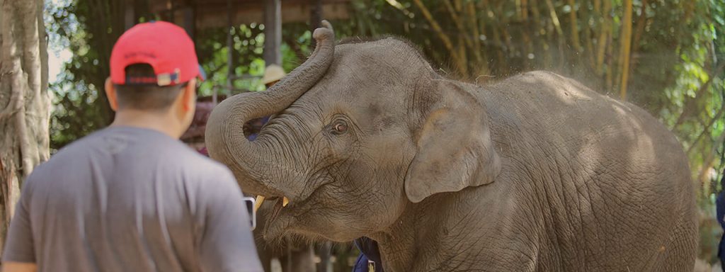 野生に戻れなくなった象の保護施設で象乗り体験やショータイムなどを行う人気観光スポット